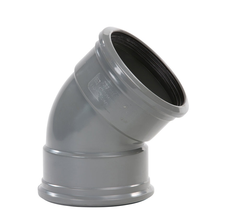 PIPELIFE BOCHT V.PVC-AFVOER Ø125mm VV 45° GRYS (1196900117)§